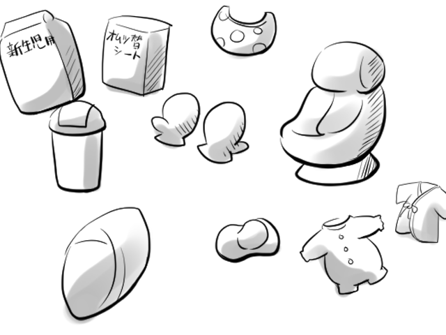 ・おむつ、お尻拭き、おむつ用ゴミ箱、おむつ替えシート
